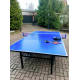 Столешница синего цвета усилена стальным каркасом, повышающим эксплуатационные свойства конструкции. Игровое поле обеспечивает оптимальный отскок шара, демонстрирует высокую устойчивость к влаге, УФ-излучениям и другим атмосферным воздействиям.